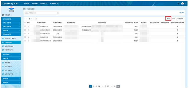 新增登记:代理机构提交营业执照、资质证书等材料,经审核通过后纳入代理机构库,记录机构类型、地址、联系人、联系方式等信息,建立完整台账;